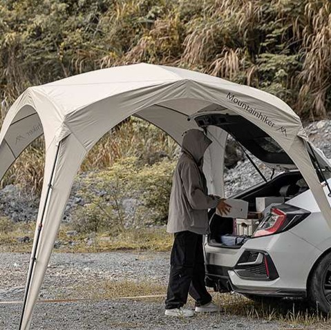 キャンプ用品の定番、瞬時に設営できるドーム型タープです。