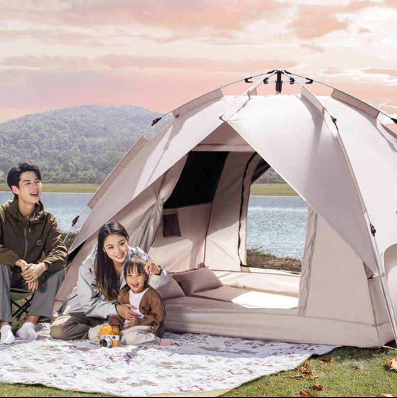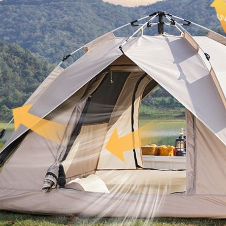 ワンタッチで簡単に設営できる自動開閉式のキャンプ用品テントです。