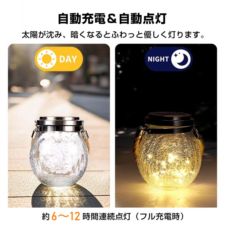 夜のキャンプを優しく彩る、美しいひび模様のソーラーランタン