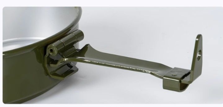 防熱設計の折りたたみ式取っ手は熱い状態でも安全に持ち運べる工夫が施されています。