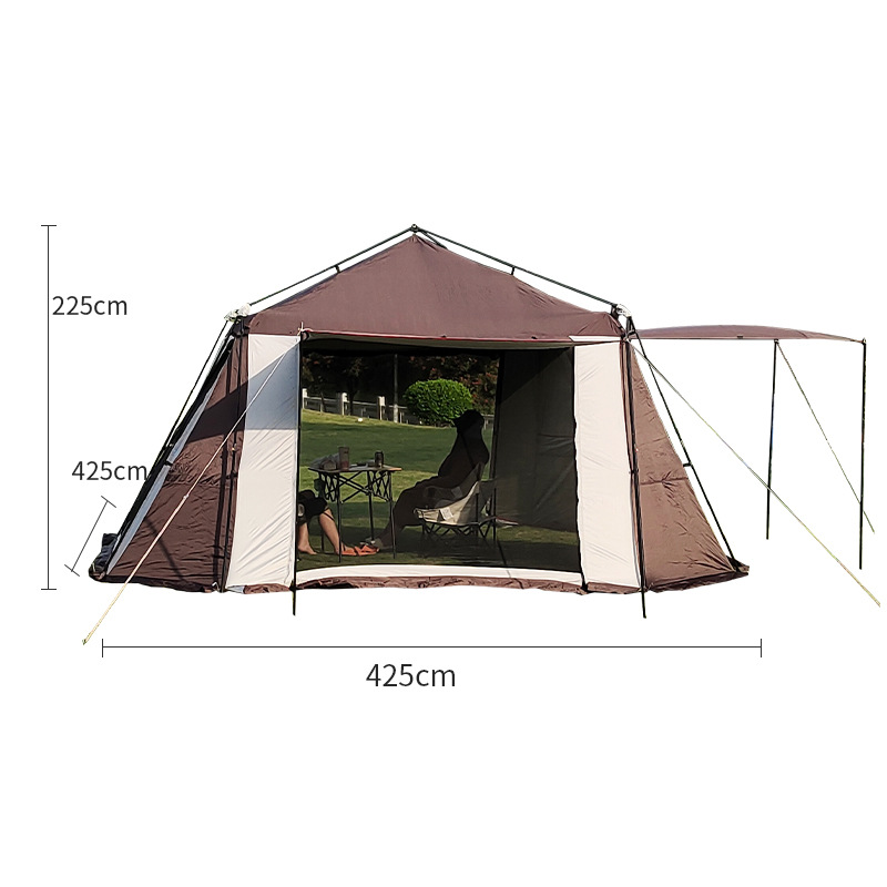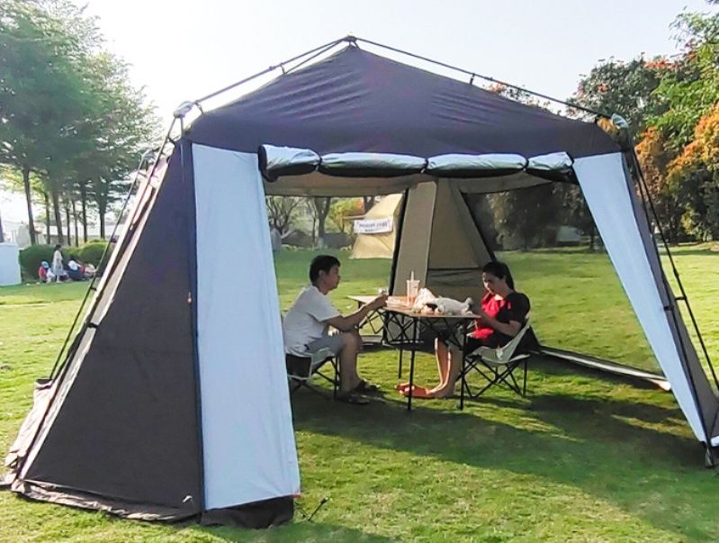 テントの大きな開口部は開放感があり、日除けとしても優れた性能を発揮します。