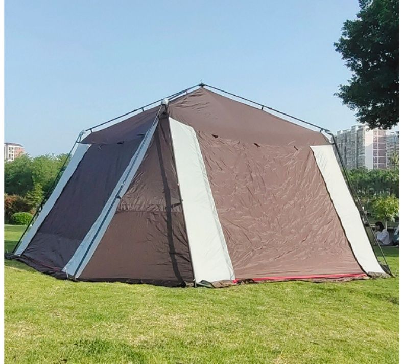 広々とした六角形デザインで家族や仲間との集まりに最適なキャンプ用品です。