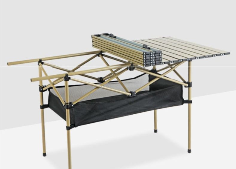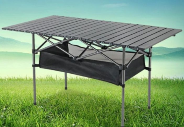 アウトドアシーンで大活躍する多機能キャンプ用品のテーブルです。